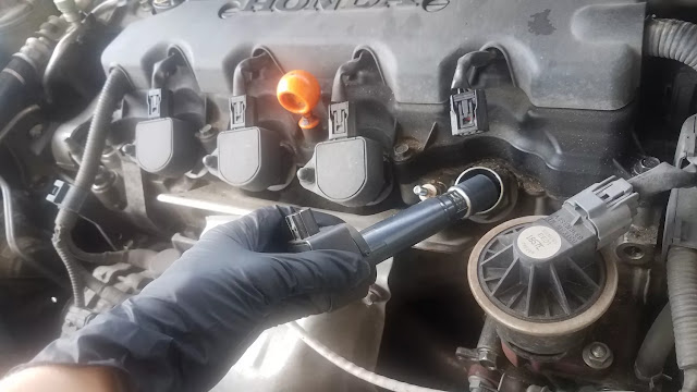 Les bougies d’allumage sont situées sous les bobines d’allumage sur cette Honda Civic 2007.