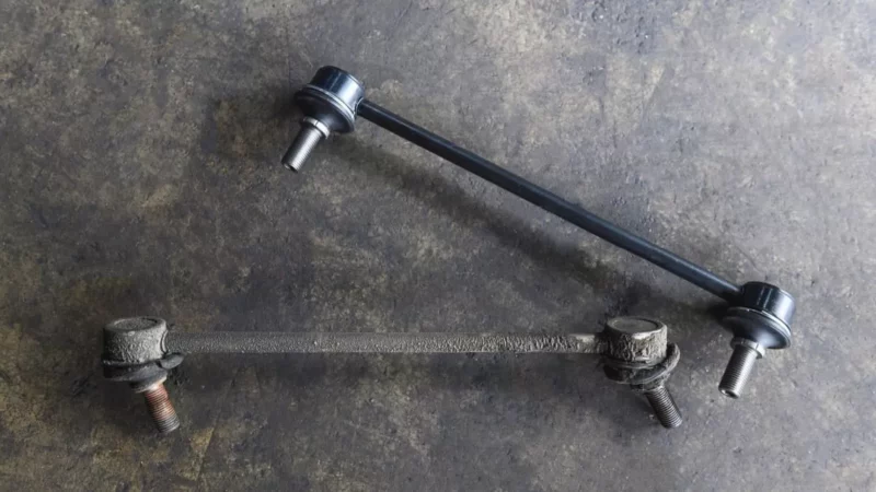 Les biellettes de la barre stabilisatrice relient la barre stabilisatrice (qui est montée sur le cadre) à une autre partie de la suspension, appelée bras de commande. Il y a un lien à chaque extrémité de la barre stabilisatrice. Certains maillons de barre stabilisatrice ont des rotules et des goujons, tandis que d’autres sont essentiellement un long boulon avec un manchon et des bagues.